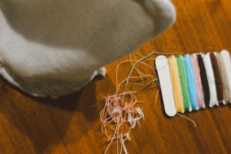 ネルの縫い付けに苦戦する正月