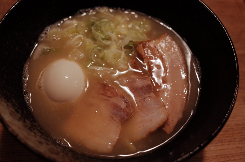 ちょうど良いスープとチャーシューの塩味と、ゆで卵の味付け、、